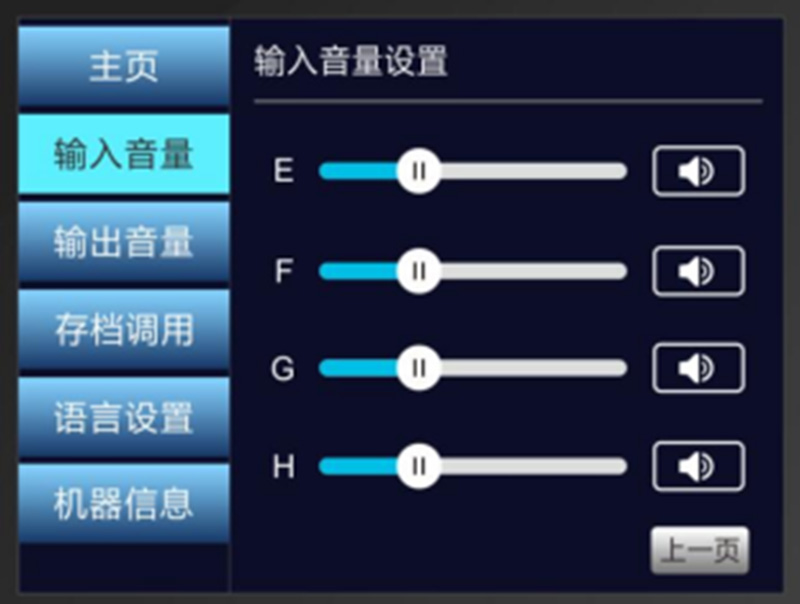 總音量調(diào)節(jié),每路音量輸入輸出音量調(diào)節(jié),存檔調(diào)用功能;操作系統(tǒng):無(wú)操作系統(tǒng),上電即運(yùn)行,485接口,F(xiàn)PGA純硬件顯示驅(qū)動(dòng);...